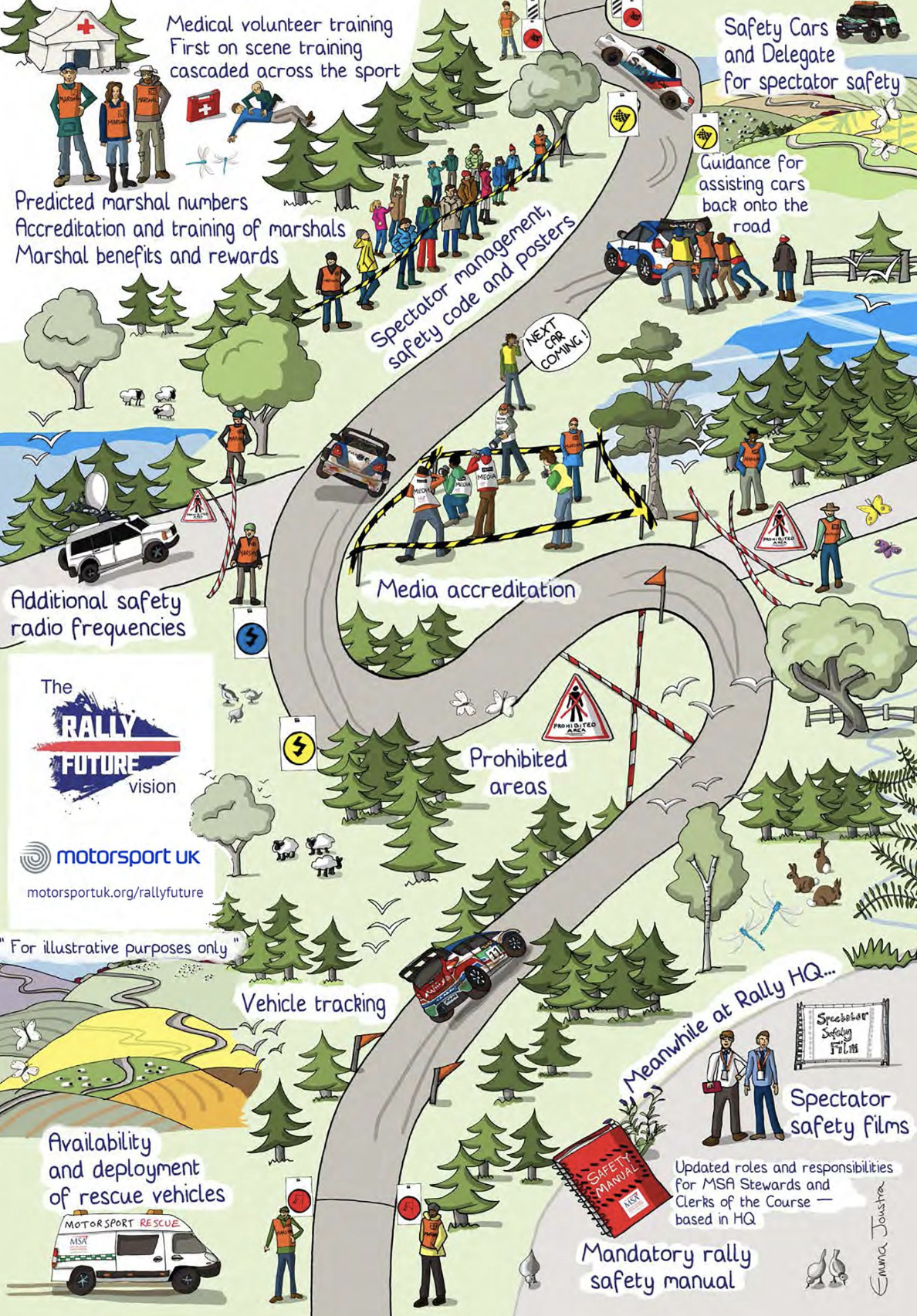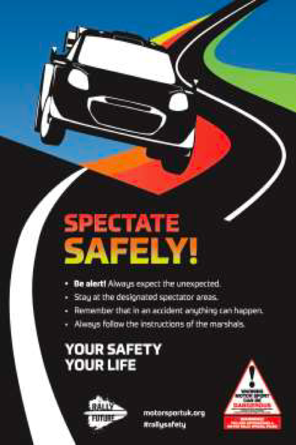 All spectators are reminded that Motorsport can be dangerous and despite us taking reasonable precautions, unavoidable accidents can happen. In respect of these, you are present at your own risk. We ask that you obey all instructions of safety marshals, spectator marshals and police officers in relation to your safety and that of others. If you decide to leave the stage prior to the last competitor, PLEASE ensure that you walk on the pathways or behind the tree line. All the competitors will be travelling at high speeds and spectators are strongly advised NOT to walk on the rally route. Children and infants should be accompanied by adults at all times who are responsible for their safety. Please be aware that some of the stages may take place in the dark. We suggest you take a torch, wear something with reflective strips and do NOT walk to or from your vantage point by walking on the rally route. No dogs allowed on the event – disabled assistance dogs only. Please respect the Forestry Commission by keeping the area tidy, please take all litter home with you. Please remember we sometimes need to use public roads to gain access into the forestry for emergency vehicles. Do not park on the roads as emergency vehicles may be blocked.